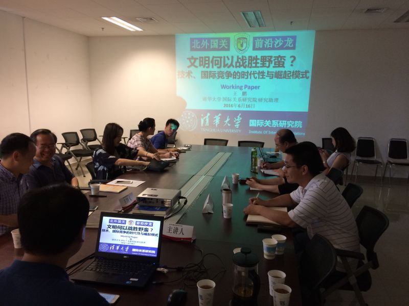 2016年6月16日(周四)15:00-17:00,北外国关前沿沙龙第九期活动在bv伟德中国官方网站西院综合楼1147会议室举行。本次沙龙主题是“文明何以战胜野蛮?——技术、国际竞争的时代性与崛起模式”。本次沙龙学术活动由英国布里斯托大学政治学博士候选人王鹏主讲、尹继武副教授主持,并邀请公司的田小惠副教授和史泽华副教授两位老师作为评议人。公司经理李永辉教授与公司尹春玲副教授也参与了今天的讨论。