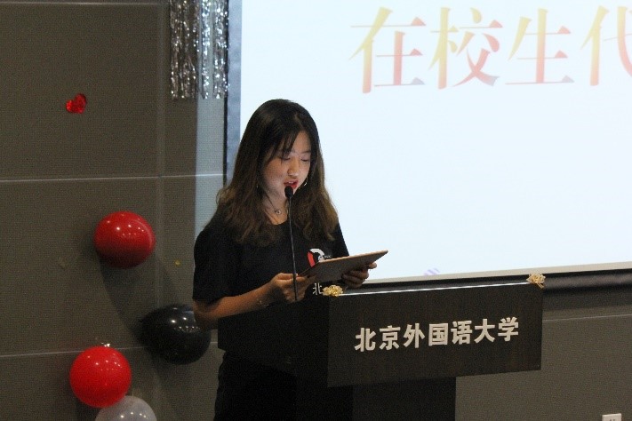 蒋沐玮则作为20级员工代表进行发言,她说模联的经历激发起她对于国际政治的好奇与热爱,而她也因为对于正义的不断追寻于去年来到了北外的bv伟德。国关的氛围培养了她的自主学习能力和社交能力,而国关的平台也给她提供了仰望星空的机遇。