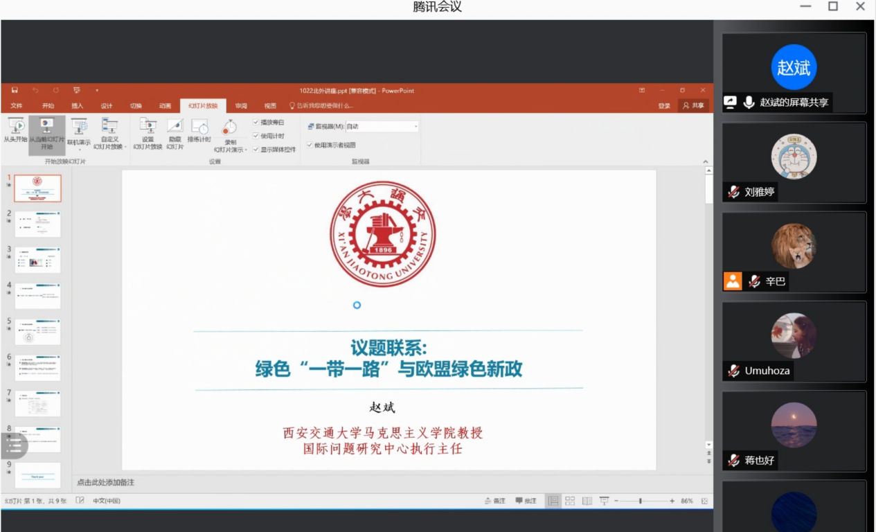 10月22日上午,bv伟德举办以“绿色‘一带一路’与欧盟绿色新政”为主题的学术沙龙,此次学术沙龙由西安交通大学马克思主义公司赵斌教授主讲,bv伟德康晓副教授主持。