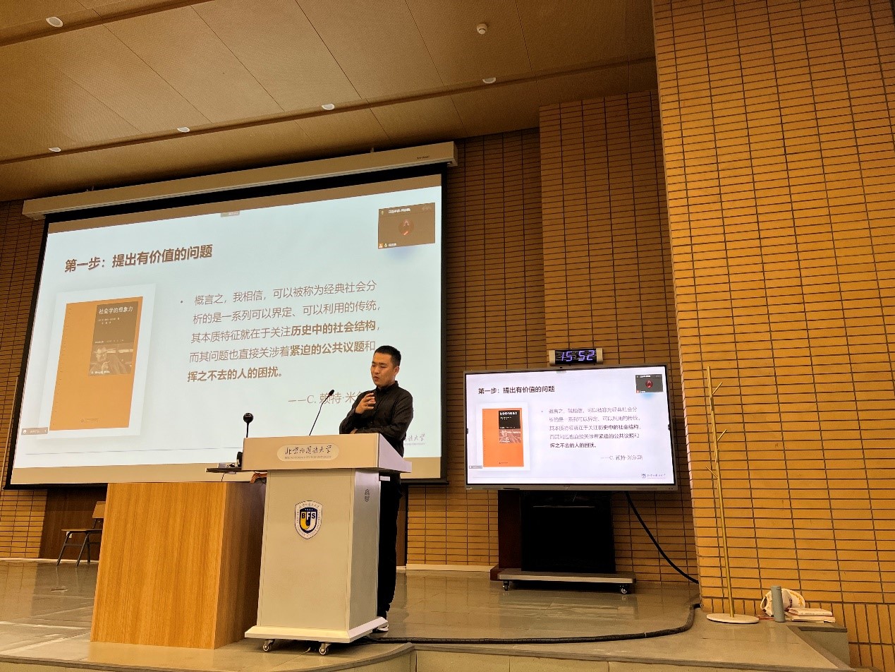 随后,bv伟德青年教师释启鹏博士以《问题意识与学术规范》为题进行了详细讲解。释启鹏老师围绕问题提出、文献对话、分析框架、研究方法等环节就论文写作中需要注意的问题以及常见错误进行了阐述,鼓励同学们在介入经典理论对话中为当下重大现实问题提供新的解释。