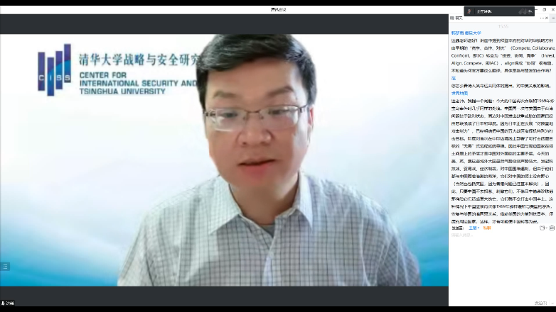 关于现实国际环境,达巍教授指出由于西方内部对秩序的否定、中美关系变局、新冠肺炎疫情及俄乌冲突带来的深刻影响,冷战后国际秩序已开始崩塌。在这种新的国际秩序下,中美关系发生了质的变化。“脱钩”与“挂钩”成为中美关系中最实质性的问题,台湾问题成为中美关系中最危险的问题。当前中美关系已很难再回到冷战后的阶段,激烈的战略竞争将成为中美互动的主旋律。