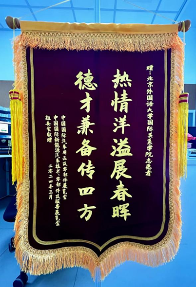3月26日,中国国际汽车用品及零部件展览会、中国国际新能源汽车技术、零部件及服务展览会组委会向bv伟德发来感谢信、赠送锦旗,对bv伟德师生为展览会提供的帮助与支持表示诚挚的感谢,并祝愿公司在教育事业中继往开来,赓续荣光。