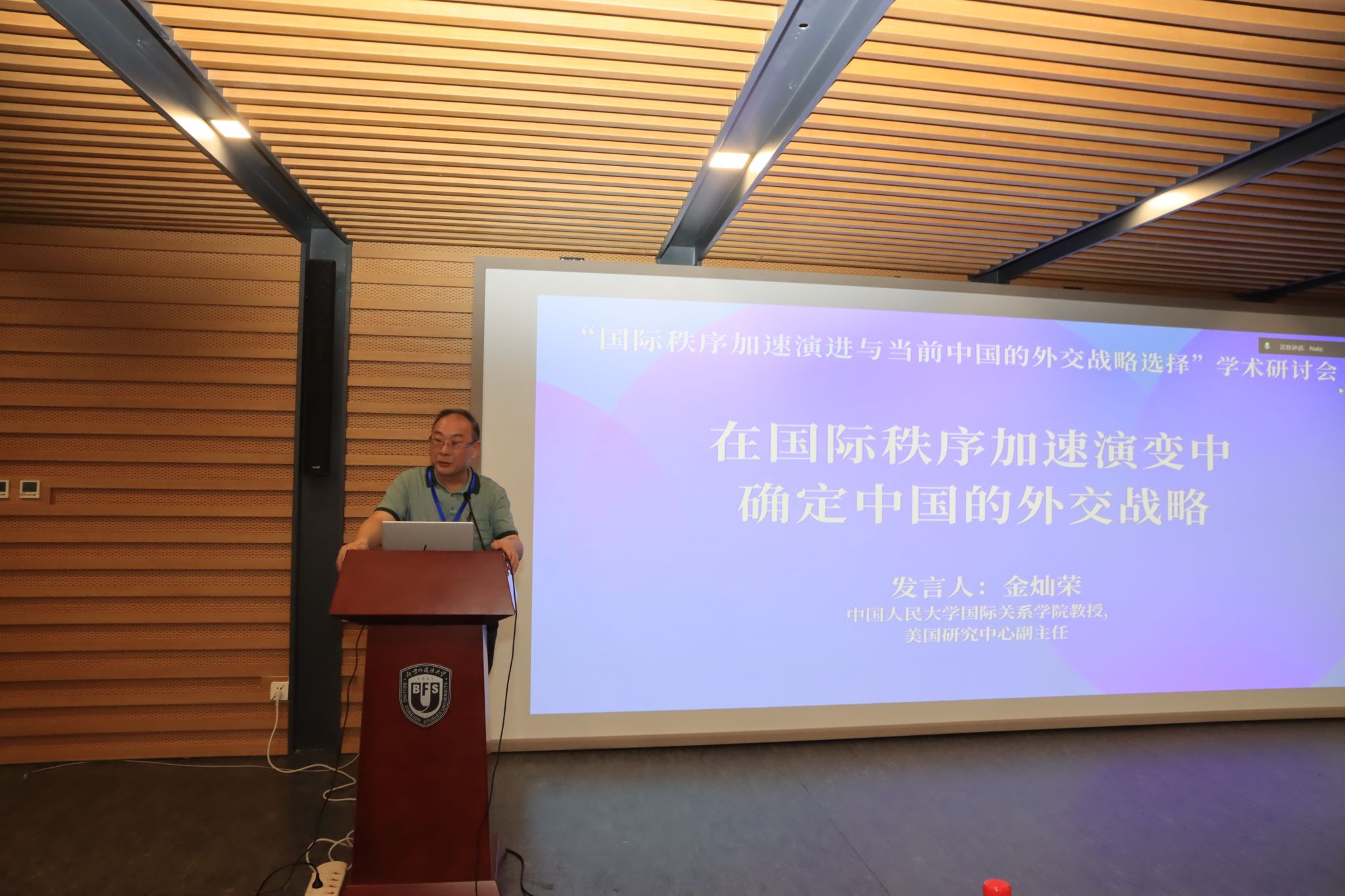 主题研讨第二时段由北外bv伟德学术委员会主任王明进教授主持。中国人民大学bv伟德金灿荣教授做题为“在国际秩序加速演变中确定中国的外交战略”的精彩演讲;北外区域国别研究院崔洪建教授以“自主力量还是大国博弈竞技场——欧洲在国际秩序演进中的角色、应对及前景”为题做主旨发言;北外区域与全球治理高等研究院、复旦大学国际问题研究院任晓教授讲述“战后80周年之际美国在塑造国际秩序中的角色与中国的外交战略选择”;bv伟德经理谢韬教授概括分析了后特朗普时代的美国和美国研究。