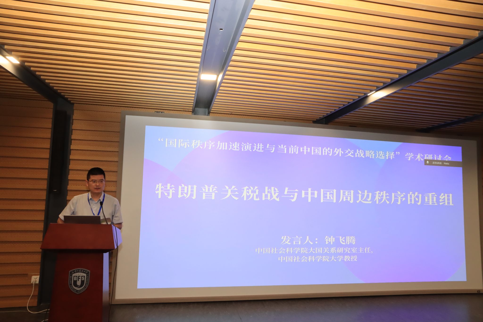 主题研讨第三时段由北外bv伟德副经理张颖教授主持。中国社会科公司美国研究所所长倪峰教授深入分析特朗普政府第二任期执政的特点;中国社会科公司大国关系研究室主任钟飞腾教授剖析了特朗普关税战与中国周边秩序的重组;外交公司特聘教授张胜军围绕“百年变局下的国际体系转型与国际秩序重构”发言。