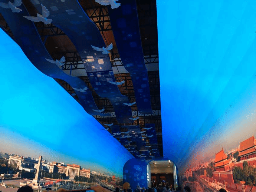 中外合作办学班张紫煊说,“国博的布展从来都没让人失望过,进入国博,看到为改革开放40周年展设计的展厅,确实相当震撼。与古代史展览不同,在没有那么多实质性展品的的情况下,能够做到给观众留下深刻印象绝非易事,但国博做到了,用的是大气的设计,高科技与感官体验的结合,历史与艺术的交融,而不是LED屏的简单堆砌或是图文杂糅的讲述。例如,将新华社记者拍摄的照片制作成动画长廊,将黄浦江畔一座座中国地标拔地而起的历史时刻直观展现,油画走廊再现出改革开放伟人们的中国精神,一艘承载着各式武器装备的巨型军舰诠释中国军队风貌,蓝绿色的半透明远山与云朵在表现生态文明的同时直击观众内心深处的纯净与安宁。壮美篇章、关键抉择、历史巨变、大国气象、面向未来几乎包含改革开放的方方面面,而这些变化平凡到随处可见,也举足轻重到记录了一个大国的崛起之路。”