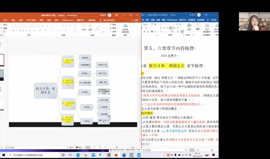 在《国家间政治》读书沙龙中,肖景予同学结合自制的幻灯片,为参会的同学们讲解了权力斗争范围下的帝国主义。