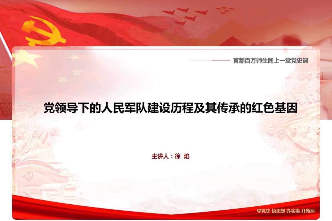 2021年4月14日下午,bv伟德员工党支部党员共同观看“首都百万师生同上一堂党史课” 网络公开课第三讲,学习“党领导下的人民军队建设历程及其传承的红色基因”。徐焰教授讲授了我们党领导人民军队在内忧外患中诞生、在磨难挫折中成长、在攻坚克难中壮大的艰辛历程,描绘了一幅我们的革命武装从星星之火发展成燎原之势的波澜壮阔的历史画卷,准确凝练并系统总结了人民军队所传承的红色基因,深刻揭示了人民军队从胜利走向新的胜利与党的正确领导密不可分,与这份红色基因的代代相传紧密相连。