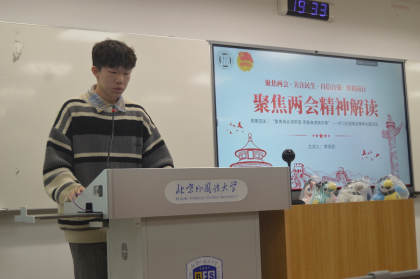 知识竞赛激发学习主动性,视频展播助力理论吸收,专题讲解夯实专业认知。通过此次活动,同学们深入学习了全国两会精神内涵,强化了政治素养与全球视野。在场同学们纷纷表示,要将个人成长融入国家战略,以更扎实的专业本领服务外交事业。