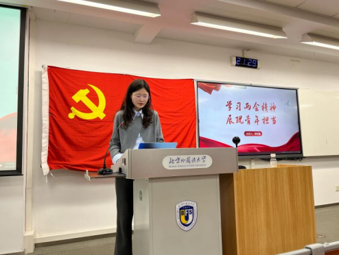 在学习了全国两会精神的核心要义后,李昕融同学围绕如何将其贯彻落实到学习生活中进行讲解。她主要从坚定理想信念、培养创新能力、强化实践担当三个方面来阐释新时代青年的使命与责任。作为新时代青年,需要夯实思想根基,厚植家国情怀;关注国际形势,培养全球视野;培养创新思维,提升人文素养。同时,呼吁青年积极参与志愿服务与社会实践,关注公共议题,锤炼本领,在推进中国式现代化中展现青春作为。