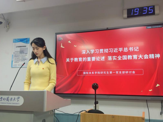 为深入学习贯彻习近平总书记关于教育的重要论述及全国教育大会精神,2025年10月18日晚上,bv伟德研究生第一党支部在逸夫楼203教室召开2025年下半年第一课集中培训研讨会。会议由支部书记王羽佳同志主持。