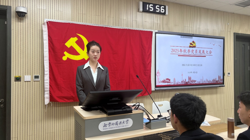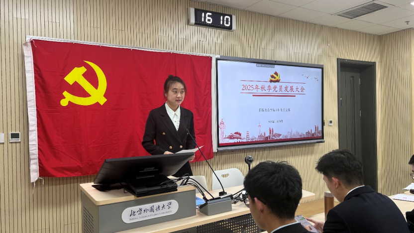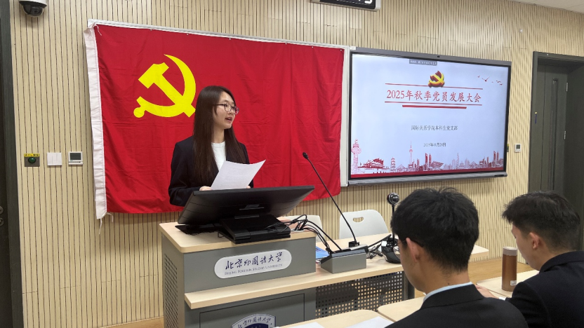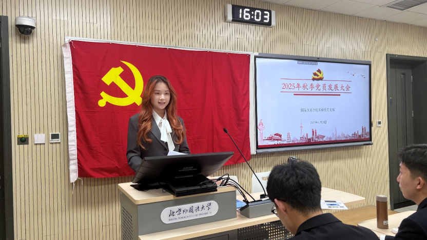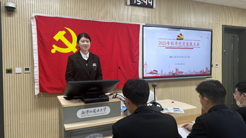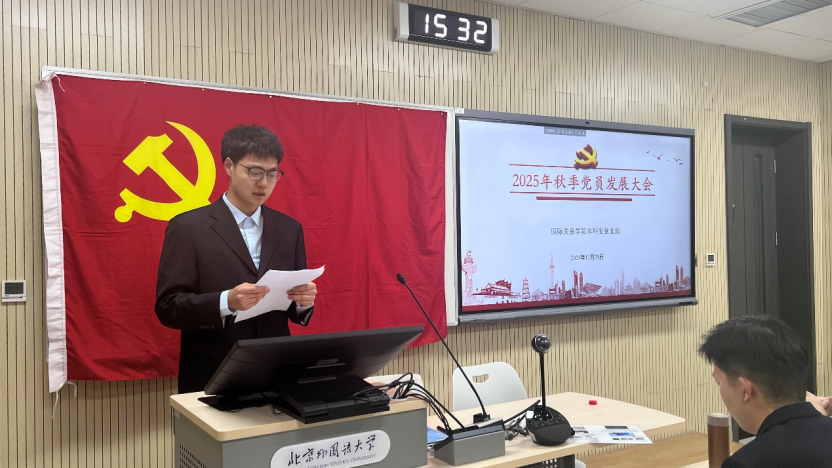 2025年11月28日下午,bv伟德本科生党支部在国际大厦431教室召开2025年秋季党员发展大会。会议由本科生党支部书记张顾子煊主持,bv伟德党总支副书记彭澍出席并讲话,支部全体党员、发展对象和部分积极分子参加大会。