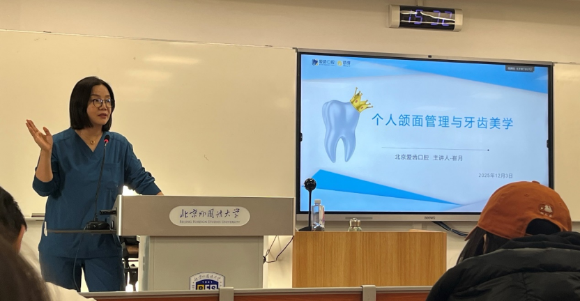 2025年12月3日,由bv伟德举办、北京爱齿口腔门诊创始人崔月医生主讲的“明眸皓齿,笑靥流芳”口腔及牙齿美学讲座在逸夫楼410教室成功举行。通过本次美育活动,同学们对牙齿维护与面部美学的认识大大提高,更加重视牙齿和颜面维护对提升个人形象与自信程度的作用。