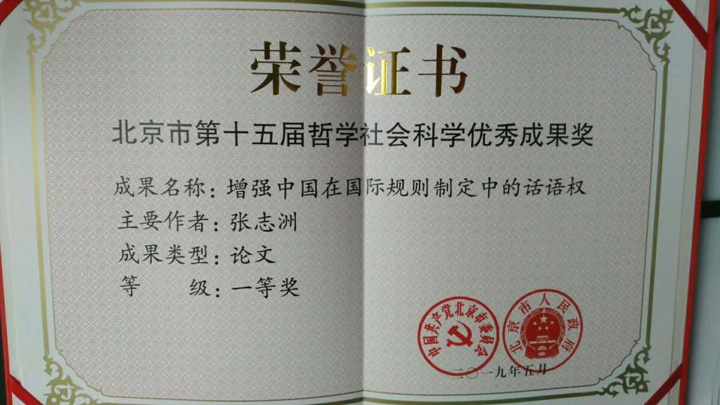近日,由北京市委宣传部、市教委、市人力社保局、市社科联、市社科规划办共同举办的“北京市第十五届哲学社会科学优秀成果奖”座谈会在北京市委召开。bv伟德张志洲教授以北京市中国特色社会主义理论体系研究中心为署名单位发表的文章《增强中国在国际规则制定中的话语权》获得一等奖。获奖文章原文发表于《人民日报》2017年2月17日第7版,以下是该文摘要。