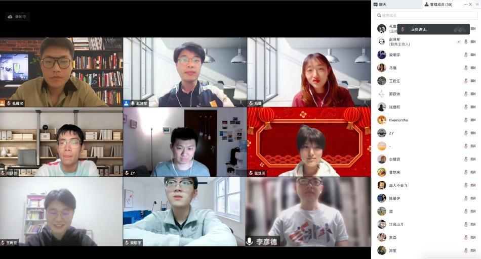 分享会邀请了王乾任、张煜昕和马璐三位同学进行保研准备、留学申请以及考研备战等升学经验的分享,共有四十多位同学参加。分享会采取线上形式,大家“云”中守望,收获满满。