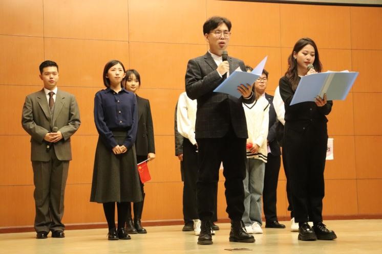 22级硕士研究生班的同学们带来改编自电影《万里归途》的朗诵剧《归途》。生动展现了外交官们面对撤侨任务中的枪林弹雨与生离死别,带领成千上万的同胞走上归途的坚定信念。