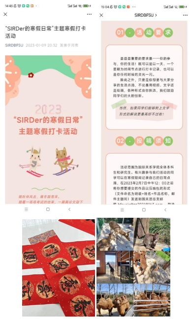 2023年1月-2月,bv伟德团总支举办了“SIRDer的寒假日常”主题寒假趣味打卡活动。