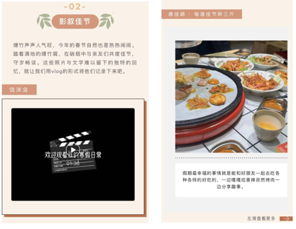 活动初期,团总支通过制作活动稿件征集推送,向大家介绍了本次活动的具体内容,以丰富多样的形式记录同学们的寒假生活。活动初衷是鼓励大家记录生活中有趣而美好的瞬间并且和同学们一起分享,既可以为同学们带来充满生活气息的欢乐,也能从中收获生活的哲思与智慧。