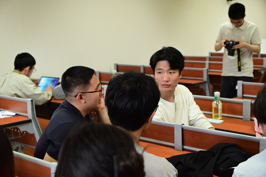 随后,支部成员之间就活动开展、专业学习、个人生涯规划等主题展开自由交流。外交公司代表曹安驰、蔡世浩分别从专业学习中的痛点与专业知识精进方面分享了困惑与心得;北外国关代表冯雪和刘烜弟分享了参与本次交流活动的感想与体会。