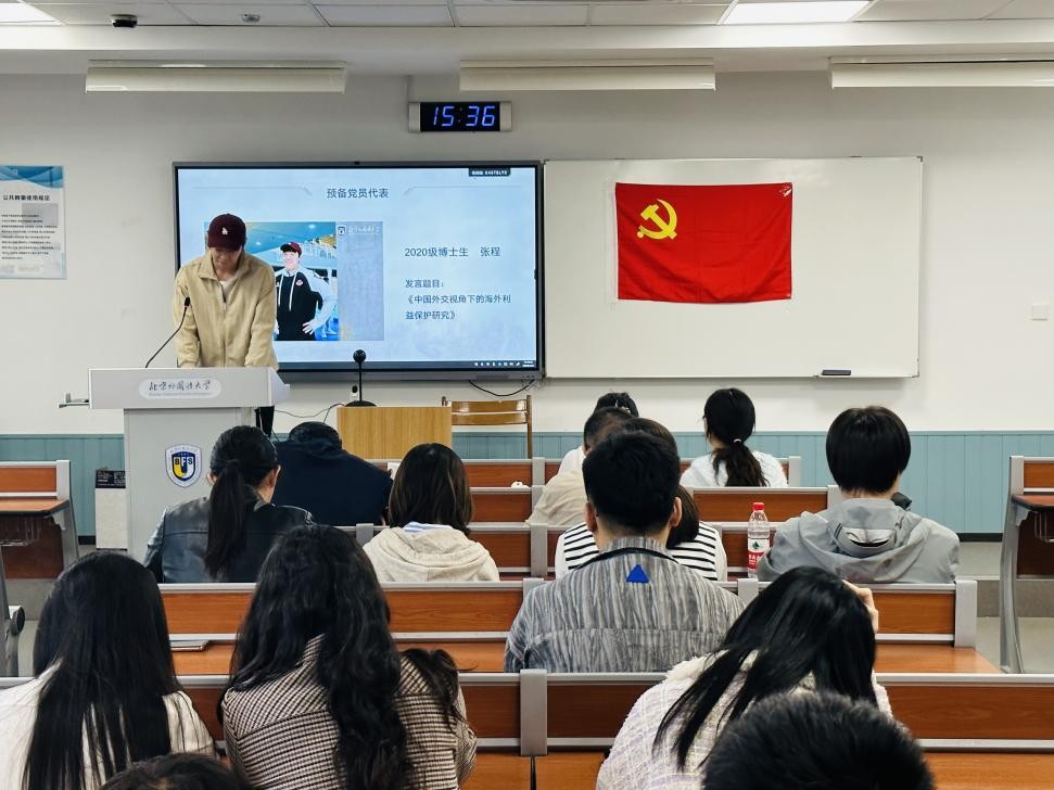 预备党员代表2020级博士张程基于中国外交的视角对海外利益保护进行分析。《政府工作报告》中提到,回顾过去一年,多重困难挑战交织叠加,世界经济复苏乏力,地缘政治冲突加剧,保护主义、单边主义上升,外部环境对我国发展的不利影响持续加大,这对中国海外利益的保护和拓展工作造成了更大的压力,也有越来越多的海外利益需要保护。对海外利益进行妥善地维护和平稳地拓展,仍是中国外交的重要使命与必修课,也是中国从世界大国走向世界强国的必由之路。中国青年应当积极投身于海外利益的保护工作中,为中国海外利益保护贡献自己的力量。